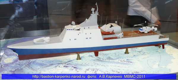 Модель корвета пр.22160. Якобы вариант для ВМФ России. Фото с выставки «Интерполитех-2015» (фото — Nikolai Novichkov, http://www.janes.com/, обработано).