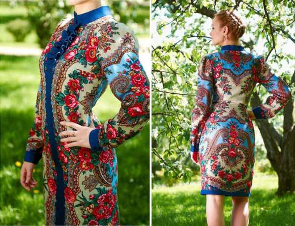 - Лоскутная одежда (пэчворк) – типичный образец russian style. Экономные русские хозяйки никогда не выбрасывали кусочки тканей, оставшиеся после кроя. Из них создавали наволочки для подушек, разноцветные одеяла, коврики. Сегодня на основе павлопосадских платков можно создавать уникальные модели вещей. Техническая сложность исполнения оправдывается потрясающим результатом.