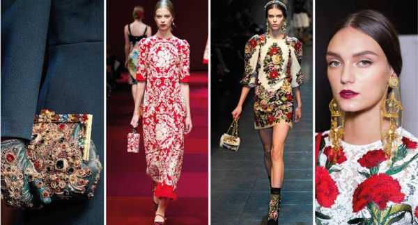 Очень важный компонент такой одежды – украшения. Именно вышивка, шитье золотыми нитями и жемчугом, в упрощенных вариантах бисером – самый, наверное, узнаваемый признак, что это мода под русскую старину. Причём в тренде будет та вещь, которая соответствует двум критериям такого декора – обилие отделки и технология, как у народных мастериц. Светские львицы пытаются сочетать такие наряды с бриллиантами, но мы не рекомендуем так рисковать – слишком велик будет контраст.