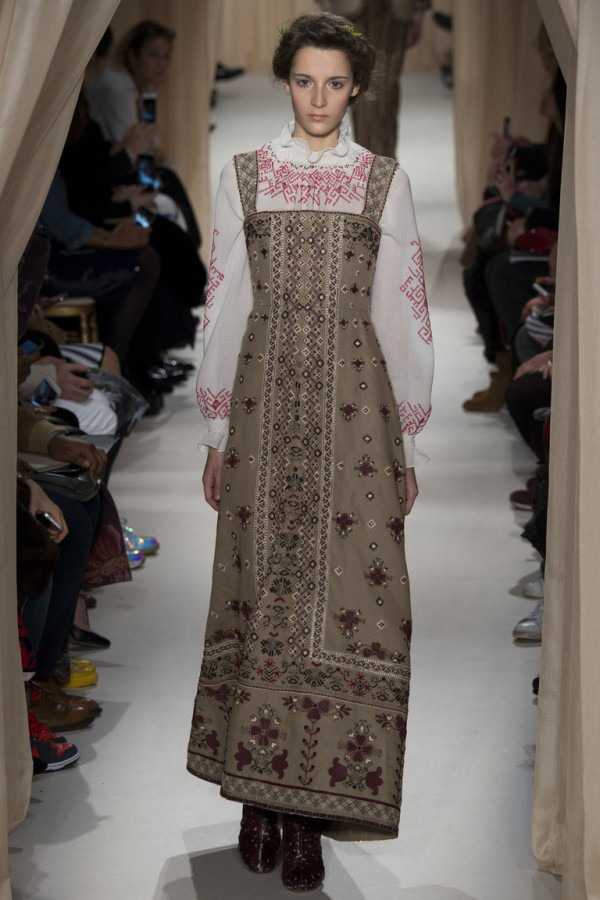 Строго говоря, современная трендовая одежда в русском народном стиле – это преимущественно заимствование элементов русского национального костюма. Не полный комплект, словно с выставки в историческом музее, а лишь наиболее аутентичные идеи, которые по неизвестной причине вдохновили того или иного дизайнера.