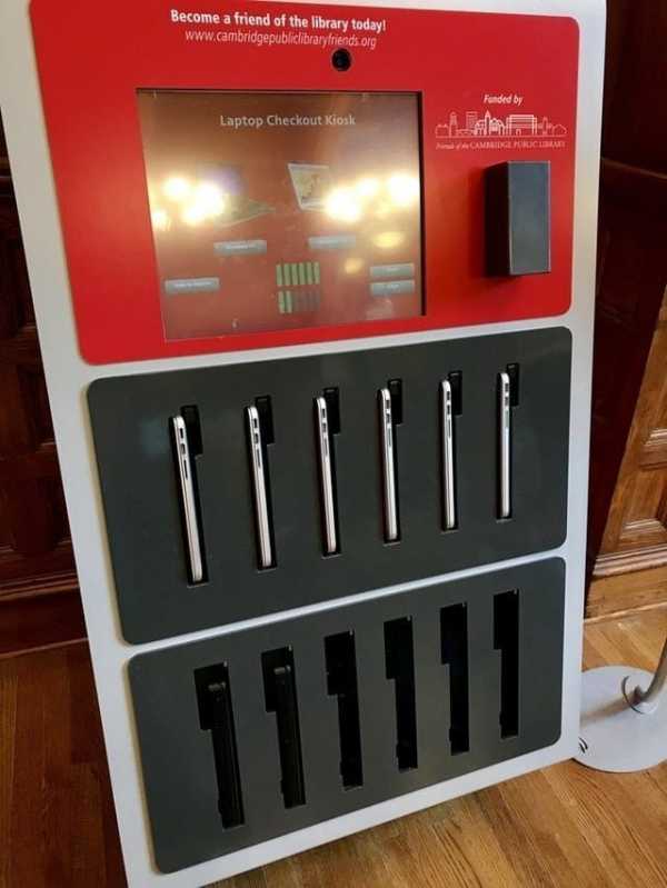 9. Вендинговый аппарат в библиотеке позволяет людям брать напрокат ноутбуки