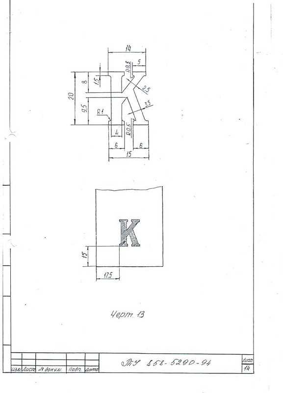 Чертёж буквы К и погона из технических условий на погоны и погончики для военнослужащих ТУ 858-5290-94.
