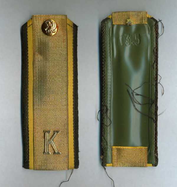 Указом Президента РФ от 8 мая 2005 г № 531 » О военной форме одежды, знаках различия и военно служащих и ведомственных знаках отличия» были введены новые знаки различия на погоны сержантов и старшин — это был возврат к советской системе нашивок и отказ от металлических уголков. Перед Вами нашивные погоны старшины с продольной нашивкой шириной 30 мм и металлической буквой «К».