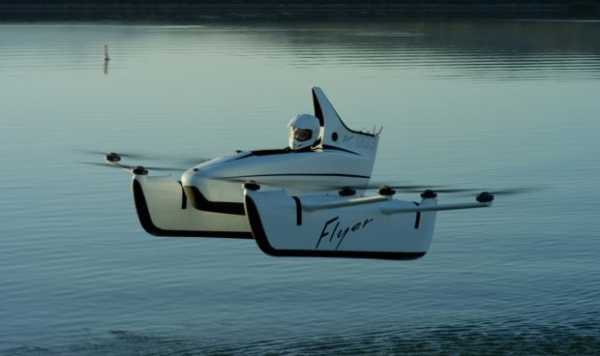 Стартап разрабатывает несколько персональных летающих транспортных средств. Недавно миру показали Flyer – одноместный электросамолет. Для демонстрации возможностей даже пригласили журналиста CNN. Но особенно хвастаться нечем – Flyer летит со скоростью 32 км/ч, на высоте трех метров и всего 20 минут. На столько хватает мощности батарей и 10 роторов, которые поднимают его в воздух. Кстати, взлетает и садится Flyer только на воду.