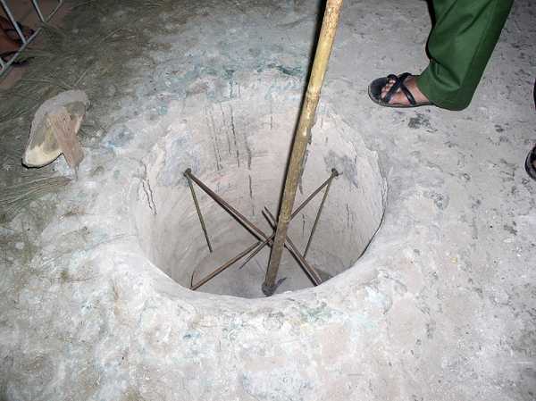 Когда команда пробивается к соседней, в вертикальную шахту вставляют для вентиляции толстую трубу из полого ствола бамбука, шахту засыпают, а бамбучину сверху маскируют под термитник или пенек.