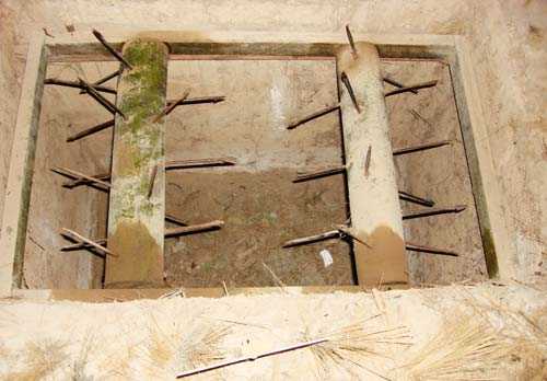 Когда команда пробивается к соседней, в вертикальную шахту вставляют для вентиляции толстую трубу из полого ствола бамбука, шахту засыпают, а бамбучину сверху маскируют под термитник, пенек или еще как.