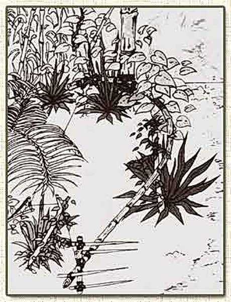Там же, где змей не было, в ход шел бамбук, а точнее, его остро заточенные стебли. Из них делались штыри, пронзавшие солдата на уровне пояса или ниже, когда «змеиная доска» приводилась в действие. Из бамбука делали колья, устанавливаемые на дно «волчьих ям», сверху замаскированных дерном или листьями.