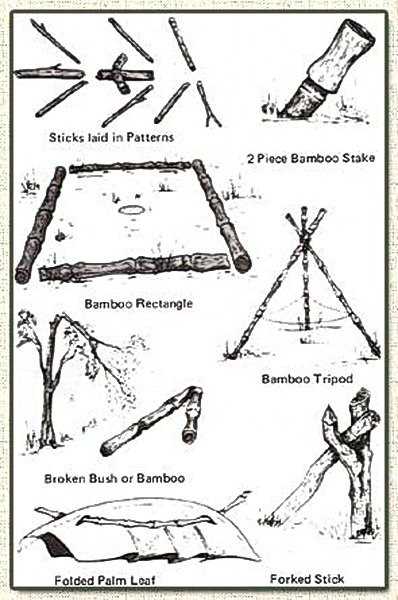 Что бы в ловушки не попадались свои, вьетнамцы разработали целую сигнальную систему из расположенных определенным образом палочек, листьев и сломанных веток. Опытный человек по этим отметкам мог определить не только, что рядом установлена ловушка, но и тип этой ловушки.