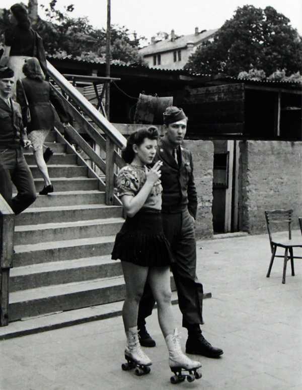Alfred Eisenstaedt10. Молодая девушка на роликовых коньках и ее парень, 40-е годы.