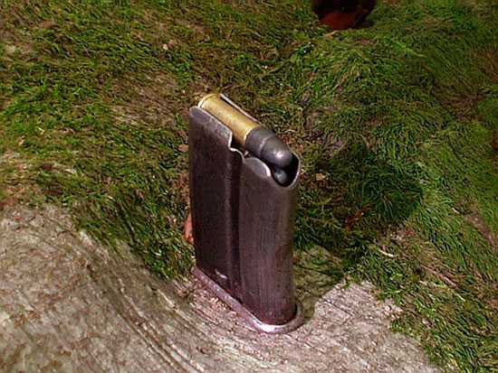 Магазин мне сразу понравился тем, что сделанным он оказался из штампованного стального листа. Обычной конструкции, легко разбирающийся для чистки и смазки, эта небольшая деталь оружия сразу вызывает симпатию опять же своей миниатюрностью и аккуратностью изготовления. Защелка магазина чем-то напоминает «макаровскую» схему. Вставляется магазин очень легко, без каких-либо перекосов и заеданий. Фиксация магазина исключительно надежная, выпадение полностью исключено. А вот извлечение магазина несколько затруднено из-за очень тугой пружины фиксатора. Хотя, и к этому можно привыкнуть. Магазин вмещает 5 патронов. Его снаряжение крохотными осаленными малокалиберными патронами с закраиной требует определенного навыка.