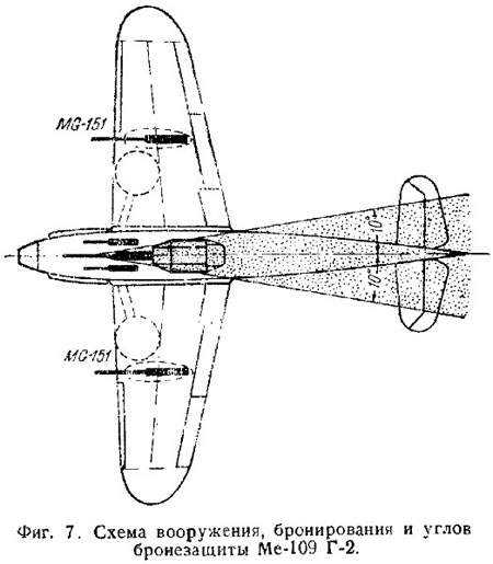 Фиг. 6. Схема вооружения, бронирования и углов брозащиты Ме-109 Г-2.