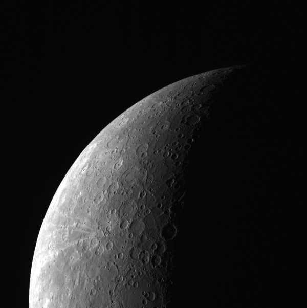 Эти фотографии Меркурия были сделаны, когда корабль был максимально близок к планете. На этом фото виден кратер Матисса, названный в честь французского художника Анри Матисса.
