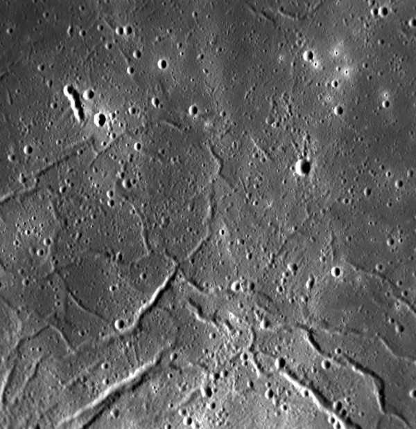 Почему многие кратеры на Меркурии остаются относительно гладкими на дне? Фотографии аппарата MESSENGER (октябрь 2008 года) показали ранее невиданные участки планеты с крупными кратерными формированиями, отличающихся лунной гладкостью. Полагают, что они были затоплены лавовыми льдами. Они древние, но все же моложе окружающей поверхности. MESSENGER вышел на орбиту в 2011 году.