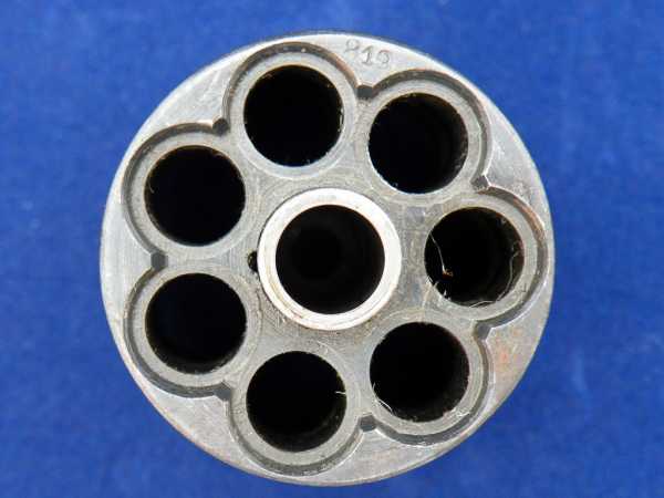 Барабан имеет семь камор для размещения патронов. Наружная поверхность барабана имеет долы, семь выемок для заднего выступа спускового крючка и семь гнезд для зубца дверцы.
