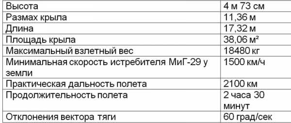 Истребитель МиГ-29: летно-технические характеристики — РИА Новости, 27.07.2014