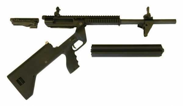 Дело в том, что во многих штатах США существует ограничение на максимально короткое гладкоствольное оружие, по этой причине там гражданскому потребителю разрешено покупать только самый длинный вариант гладкоствольного ружья с магазином вместимостью на 16 патронов. Хотя вроде бы можно приобрести и более короткий вариант, но для этого нужно получать отдельное разрешение и уплачивать дополнительный налог. Самая длинная модель гладкоствольного ружья имеет ствол длиной 457 мм, средняя модель 330 мм и самая короткая обладает стволом длиной всего в 254 мм. Длиной ствола и ограничивается вместимость магазина, так как он располагается под стволом.