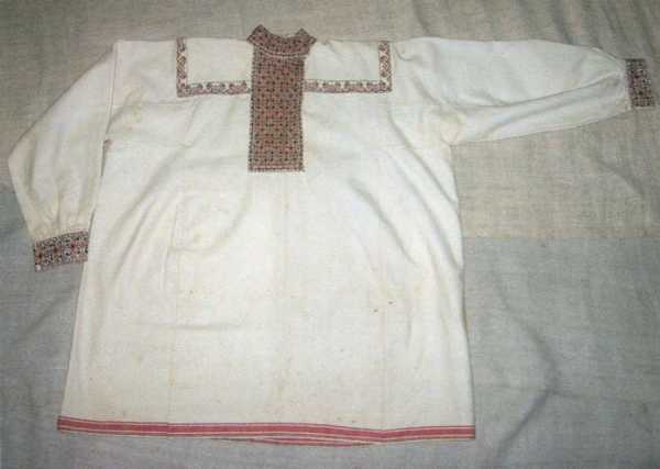 Β ΠΡΠ»ΠΈΡΠΈΠ΅ ΠΏΡΠ°Π·Π΄Π½ΠΈΡΠ½ΠΎΠΉ ΡΡΠ±Π°Ρ ΠΈ ΠΎΡ Π΅ΠΆΠ΅Π΄Π½Π΅Π²Π½ΠΎΠΉ Π·Π°ΠΊΠ»ΡΡΠ°Π»ΠΎΡΡ Π»ΠΈΡΡ Π² ΡΠΎΠΌ, ΡΡΠΎ Ρ ΠΏΠ΅ΡΠ²ΠΎΠΉ Ρ ΠΎΠ»ΡΡ Π±ΡΠ» ΠΎΡΠ±Π΅Π»Π΅Π½Π½ΡΠΌ ΠΈ ΡΠΊΡΠ°ΡΠ΅Π½ ΠΏΠΎ ΡΡΠΊΠ°Π²Π°ΠΌ ΠΈ ΠΏΠΎΠ΄ΠΎΠ»Ρ ΡΠΈΡΠΎΠΊΠΈΠΌ ΠΊΡΠ°ΡΠ½ΡΠΌ ΡΠ·ΠΎΡΠΎΠΌ, ΠΊΠΎΡΠΎΡΡΠΉ ΡΠ»ΡΠΆΠΈΠ» ΠΎΠ±Π΅ΡΠ΅Π³ΠΎΠΌ ΠΎΡ Π·Π»ΡΡ ΡΠΈΠ». ΠΡΠ½Π°ΠΌΠ΅Π½ΡΠ°Π»ΡΠ½ΡΠ΅ ΠΌΠΎΡΠΈΠ²Ρ ΠΈ ΡΠΏΠΎΡΠΎΠ±Ρ ΠΈΡ Π½Π°Π½Π΅ΡΠ΅Π½ΠΈΡ Π½Π° ΠΌΡΠΆΡΠΊΠΈΡ ΡΡΠ±Π°Ρ Π°Ρ Π±ΡΠ»ΠΈ ΡΠ΅ ΠΆΠ΅, ΡΡΠΎ ΠΈ Π½Π° ΠΆΠ΅Π½ΡΠΊΠΈΡ .Β ΠΠΈΡΡ ΠΌΡΠΆΡΠΈΠ½Ρ Π‘Π΅ΠΌΠΈΠΏΠ°Π»Π°ΡΠΈΠ½ΡΠΊΠΎΠΉ ΠΈ ΠΠΎΡΠΎΠ½Π΅ΠΆΡΠΊΠΎΠΉ Π³ΡΠ±Π΅ΡΠ½ΠΈΠΉ ΡΠ΅Π·ΠΊΠΎ ΠΎΡΠ»ΠΈΡΠ°Π»ΠΈΡΡ ΠΎΡ ΠΎΡΡΠ°Π»ΡΠ½ΡΡ . Π£ ΠΏΠ΅ΡΠ²ΡΡ ΠΏΡΠ°Π·Π΄Π½ΠΈΡΠ½Π°Ρ ΡΡΠ±Π°Ρ Π° ΠΈ Π½Π° Π³ΡΡΠ΄ΠΈ, ΠΈ Π½Π° ΡΠΏΠΈΠ½Π΅ Π±ΡΠ»Π° ΠΏΡΡΠ½ΠΎ ΡΠ°ΡΡΠ²Π΅ΡΠ΅Π½Π° ΡΠ·ΠΎΡΠΎΠΌ Π·Π°ΠΌΡΡΠ»ΠΎΠ²Π°ΡΠΎΠ³ΠΎ Π³Π΅ΠΎΠΌΠ΅ΡΡΠΈΡΠ΅ΡΠΊΠΎΠ³ΠΎ Ρ Π°ΡΠ°ΠΊΡΠ΅ΡΠ° ΠΈΠ· ΡΠΈΠ½Π΅Π³ΠΎ ΠΈ ΠΊΡΠ°ΡΠ½ΠΎΠ³ΠΎ ΡΠ²Π΅ΡΠΎΠ², Π° ΠΠΎΡΠΎΠ½Π΅ΠΆΡΠΊΠΈΠ΅ ΠΌΡΠΆΡΠΈΠ½Ρ ΠΏΡΠ΅Π΄ΠΏΠΎΡΠΈΡΠ°Π»ΠΈ Π²ΡΡΠΈΠ²ΠΊΡ ΠΈΡΠΊΠ»ΡΡΠΈΡΠ΅Π»ΡΠ½ΠΎ ΡΠ΅ΡΠ½ΠΎΠ³ΠΎ ΡΠ²Π΅ΡΠ°.