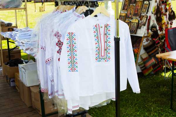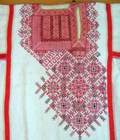 Π£ΠΊΡΠ°ΠΈΠ½ΡΡ, Π½Π°ΡΡΠ΄Ρ Ρ ΡΠ·ΠΊΠΈΠΌΠΈ ΡΡΠ°Π½Π°ΠΌΠΈ, Π½ΠΎΡΠΈΠ»ΠΈ ΡΠΈΡΠΎΠΊΠΈΠ΅ ΡΠ°ΡΠΎΠ²Π°ΡΡ, ΡΡΠ°Π½ΠΈΠ½Ρ ΠΊΠΎΡΠΎΡΡΡ Π²ΡΠΊΡΠ°ΠΈΠ²Π°Π»ΠΈ ΠΈΠ· Π΄Π²ΡΡ ΠΏΠΎΠ»ΠΎΡΠ½ΠΈΡ ΡΠΊΠ°Π½ΠΈ, ΡΠΎΠ΅Π΄ΠΈΠ½Π΅Π½Π½ΡΡ ΠΏΡΡΠΌΠΎΡΠ³ΠΎΠ»ΡΠ½ΡΠΌΠΈ ΠΈΠ»ΠΈ ΡΠΎΠΌΠ±ΠΎΠ²ΠΈΠ΄Π½ΡΠΌΠΈ Π²ΡΡΠ°Π²ΠΊΠ°ΠΌΠΈ. ΠΠ½ΠΎΠ³ΠΈΠ΅ ΠΈΡΡΠ»Π΅Π΄ΠΎΠ²Π°ΡΠ΅Π»ΠΈ Π½Π°ΡΠΎΠ΄Π½ΠΎΠΉ ΠΎΠ΄Π΅ΠΆΠ΄Ρ ΡΡΠΈΡΠ°Π»ΠΈ ΡΠ°ΡΠΎΠ²Π°ΡΡ Ρ Π½ΠΈΠ·ΠΊΠΎ ΡΠΏΡΡΠΊΠ°ΡΡΠ΅ΠΉΡΡ Β«ΠΌΠΎΡΠ½Π΅ΠΉΒ» ΠΎΡΠ»ΠΈΡΠΈΡΠ΅Π»ΡΠ½ΠΎΠΉ ΠΎΡΠΎΠ±Π΅Π½Π½ΠΎΡΡΡΡ ΠΌΡΠΆΡΠΊΠΎΠ³ΠΎ ΠΊΠΎΡΡΡΠΌΠ° ΡΠΊΡΠ°ΠΈΠ½ΡΠ΅Π². ΠΠ°ΡΠΎΠ½ ΠΠ²Π³ΡΡΡ ΠΠ°ΠΊΡΡΠ³Π°ΡΠ·Π΅Π½, ΠΏΡΡΠ΅ΡΠ΅ΡΡΠ²ΠΎΠ²Π°Π²ΡΠΈΠΉ Π² ΡΠ΅ΡΠ΅Π΄ΠΈΠ½Π΅ XIX Π²Π΅ΠΊΠ° ΠΏΠΎ Π ΠΎΡΡΠΈΠΈ ΠΈ ΠΏΠΎΡΠ΅ΡΠΈΠ²ΡΠΈΠΉ ΠΠΎΡΠΎΠ½Π΅ΠΆΡΠΊΠΈΠΉ ΠΊΡΠ°ΠΉ, ΠΏΠΈΡΠ°Π» ΠΎ ΠΆΠΈΡΠ΅Π»ΡΡ ΠΡΡΡΠΎΠ³ΠΎΠΆΡΠΊΠΎΠ³ΠΎ ΡΠ΅Π·Π΄Π°: Β«ΠΠ΅ΡΠ½ΡΡ ΠΎΠ΄Π΅ΠΆΠ΄Π° ΠΌΡΠΆΡΠΈΠ½ ΡΠΎΡΡΠΎΠΈΡ ΠΈΠ· Π±Π΅Π»ΡΡ ΡΠΈΡΠΎΠΊΠΈΡ ΡΠ°ΡΠΎΠ²Π°Ρ ΠΈ Π±Π΅Π»ΠΎΠΉ ΠΏΠΎΠ»ΠΎΡΠ½ΡΠ½ΠΎΠΉ ΡΡΠ±Π°ΡΠΊΠΈ, ΠΏΠΎΠ΄ΠΏΠΎΡΡΠ°Π½Π½ΠΎΠΉ ΡΠ²Π΅ΡΡ Π½ΠΈΡ …Β». Π Π½Π΅ΠΊΠΎΡΠΎΡΡΡ ΡΠ΅Π·Π΄Π°Ρ (ΠΠΈΡΡΡΠ΅Π½ΡΠΊΠΈΠΉ, ΠΠ°Π»ΡΠΉΡΠΊΠΈΠΉ, ΠΠΎΠ³ΡΡΠ°ΡΡΠΊΠΈΠΉ) ΡΡΠ° ΡΡΠ°Π΄ΠΈΡΠΈΡ ΠΏΡΠΎΡΠ»Π΅ΠΆΠΈΠ²Π°Π΅ΡΡΡ ΠΈ Π² ΠΊΠΎΠ½ΡΠ΅ XIX Π²Π΅ΠΊΠ°.