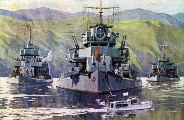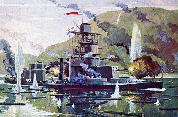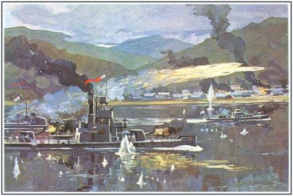 Первым добился успеха монитор “Свердлов” (до 1922 года “Вьюга”), несколькими залпами накрывший канонерские лодки “Ли-Дзи” и “Ли-Суй”. Первая была потоплена, вторая с повреждениями вышла из боя и ушла к Фунгдину. По дороге ее догнали гидросамолеты МР-1 и несколько метко сброшенных бомб разворотили у лодки все надстройки.