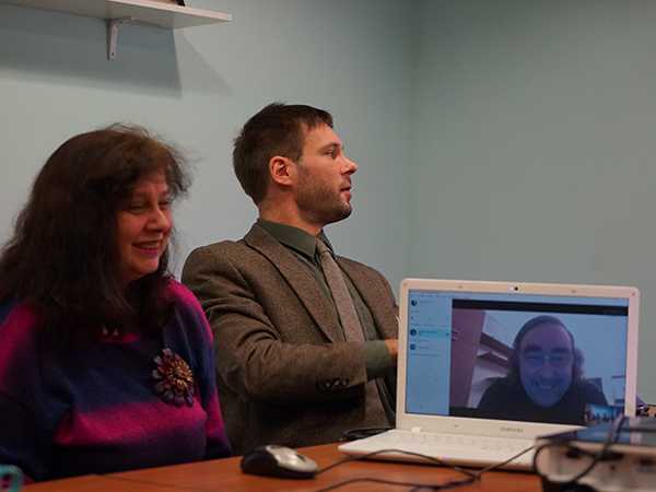 На фото: авторы проекта Лариса Мелихова, Алексей Касьян и Андрей Ростовцев (по Скайпу) вовсе не держат в руках дубинку, в их руках – лишь факты о некорректных заимствованиях