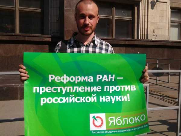 Сегодня у Совета Федерации происходило очередное «гулянье» учёных. Это форма массовых акций была выбрана представителями научного сообщества, чтобы избежать задержаний со стороны полиции и в то же время выразить свой протест против законопроекта о реформе РАН. Мне известно о задержании трёх участников акции (по информации «Ленты.ру», были задержаны четверо) — каждый из них держал в руках плакат. Одного физика сразу отпустили: по его словам, с ним провели «интеллигентную беседу». Второго — биолога Александра Осипова из Пущина — освободили через полтора часа после задержания. На него был составлен протокол о нарушении правил пикетирования. Также был задержан геолог Бронислав Гонгальский, который в знак протеста против реформы голодает с 17 сентября.