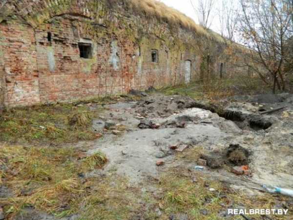 Такие следы оставили после себя «чёрные копатели» в Западном форту. Фото: Реальный Брест |