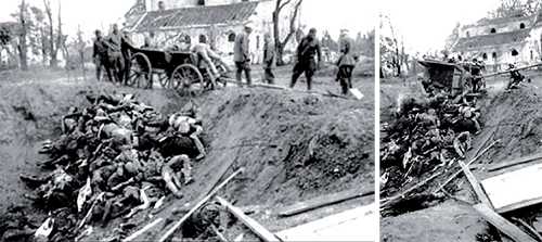 Всплывшие в интернете снимки из немецкого архива. На фото справа телега уже перевернута: возможно, сбросили очередную партию мертвых красноармейцев. В списках не значатсяКак известно, по окончании войны в Брестской крепости разместились части Красной Армии, и почти 15 лет вход сюда был закрыт. Останки красноармейцев находили сразу же после Великой Отечественной — первые захоронения на гарнизонном кладбище Бреста появились уже в 1945 году. Но и впоследствии погибших находили в течение не одного десятилетия, причем не всегда в земле. Например, по словам одной из основательниц Музея обороны Брестской крепости Татьяны Ходцевой, в 1958 году прямо в здании инженерного управления был обнаружен мертвый радист, лежавший на своей рации (сейчас она находится в музейной экспозиции).