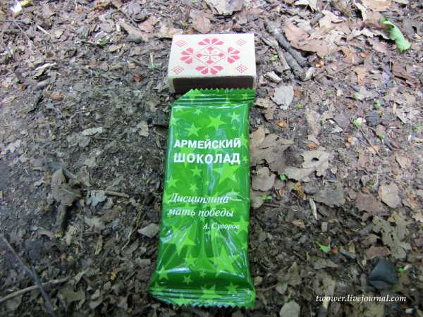- Шоколад горький. С идеологической обработкой бойца, представленной суворовским изречением.