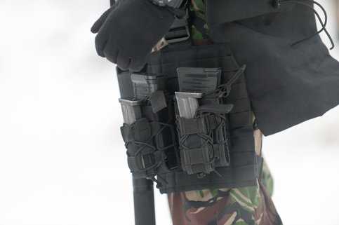 Кроме того, на операцию бойцы выходят в шлемах и бронежилетах, на которых есть клапаны и карманы для дополнительных элементов экипировки. В дополнение к этому у них есть наколенники, налокотники и щитки для ног.