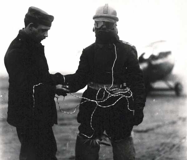 Инновационный костюм немецкого летчика с электрическим подогревом, маской, жилетом и меховыми сапогами. (Фото National Archives | Official German Photograph):
