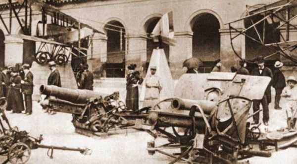 Трофейные немецкие гаубицы и траншейная артиллерия на показе в Париже.