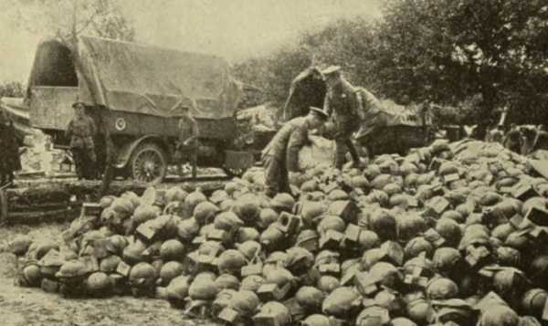 5.Появление железных касок у солдат — еще одном изобретении первой мировой войны. Учитывая массовое применение пулемётов и осколочных гранат, на головы солдат буквально посыпался град из пуль, шрапнели, осколков снарядов.Кроме того, «окопный» характер боевых действий проводил к тому, что наиболее уязвимой частью тела пехотинца была именно голова, которая волей-неволей периодически «высовывалась» из окопа.