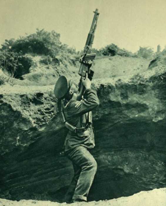Британский солдат стреляет по немецкой авиации.