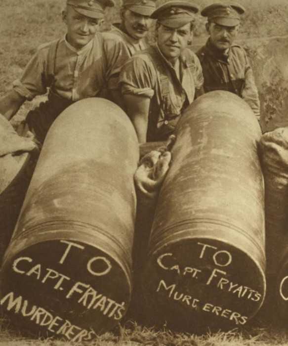 Британские снаряды, на которых написано: «Убийство капитана Фруята не забыто».