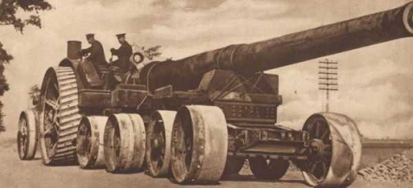 Тяжелое британское орудие, буксируемое трактором.
