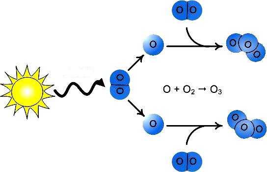 Непосредственно у поверхности нашей планеты всегда присутствует некоторое количество молекул О3, но с высотой концентрация соединения возрастает. Образование этого вещества происходит в стратосфере благодаря ультрафиолетовому излучению Солнца, несущему большой запас энергии.