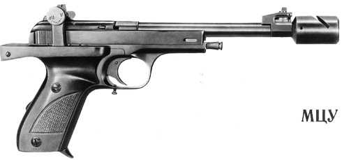· МЦУ — пистолет для скоростной стрельбы, оснащенный специальной рукоятью, ограничителем хода спускового крючка, и дульным компенсатором.