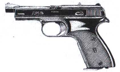 · «Дрель» — модифицированный пистолет «Марго» с укороченным до 78 мм стволом, под патрон 5,45×18 мм с, созданного для ПСМ. Пистолет имел магазин на 10 патронов.