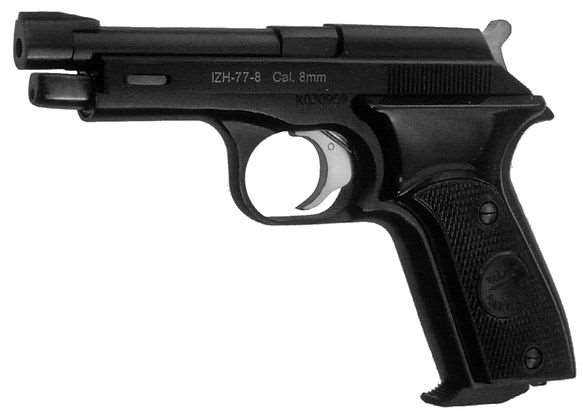· ИЖ-77 — газовый пистолет, выпускался с 1993 года в двух модификациях — под 7,6-мм газовый патрон ТК-024 и под 8х20 мм газовый патрон. Пистолет комплектовался без целика и мушки.