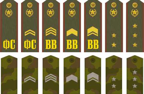 - Полевая форма — фальш-погоны камуфлированного цвета.