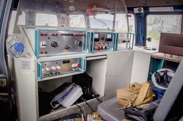 8. Вот так выглядит салон мобильной станции. Что тут секретного? 5-литровая канистра? У меня на кухне таких несколько, я же не шпиён. Вон документы лежат, может, они секретные, но в них не суёмся.