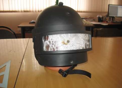 Шлем «Рысь» с кварцевым стеклом по 2 классу ГОСТ Р 50744-95. Испытан обстрелом пулей Пст к пистолету ТТ.