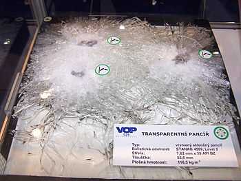 - ↑ Опытным путём было установлено, что оптимальная стойкость для калибра 7,62 мм обеспечивается при соотношениях масс силикатного и органического стекла приблизительно 50:50.