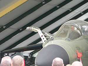 Жаклин Кокран в кабине F-86 Sabre (основного истребителя США времён Корейской войны) и Чарльз Йегер. Лобовое бронестекло козырька имело скорее символическое значение, и по толщине значительно уступало аналогичному советского МиГ-15. Приоритет лучшей обзорности кабины F-86 («владение обстановкой»), а не живучести/защищённости. Высвободившаяся масса — в пользу более совершенного БРЭО, в том числе радиолокационного прицела.