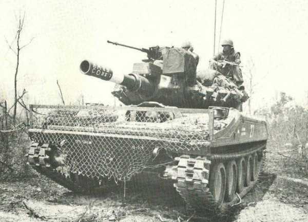 В 1966 году Пентагон впервые предложил опробовать Sheridan американской армии во Вьетнаме, но в то время снаряды для пушки были еще недоработанными (проблемы с гильзами), поэтому танкисты дали машине едкое, но меткое прозвище — «пулемет за 300 штук» ($300,000 machine-gun platform). В 70-е, кстати, такие люксовые автомобили как Lincoln Continental или Cadillac Eldorado можно было купить за 7000$ — вот такая арифметика. Мартовский доклад 1967 г. о применении бронетехники во Вьетнаме четко обозначил необходимость в легком танке, мобильность которого была бы не хуже, чем у М113, а защищенность и огневая мощь — выше. В то время как сам М551 просто напрашивался на эту роль, в докладе значение Шеридана ставится под сомнение из-за отсутствия противопехотных боеприпасов, слабой приспособленности для ведения ночного боя, плохого бронирования и отсутствия комплекта бульдозерного оборудования. В докладе не предполагалось внесения каких-либо изменений в конструкцию машины специально, но в OTAC (американский аналог нашего автобронетанкового управления) увидели шанс реабилитироваться и хоть как-то оправдать начатое серийное производство «сырого» танка. Были инициированы разработки: нового шрапнельного боеприпаса М625, специального комплекта противоминной защиты днища и увеличения возможностей техники в ночном бою. К 1968-му, когда, наконец, все было готово, в том числе и доведены «до ума» снаряды к пушке, начали реализовывать план по переоснащению 1-го и 3-го эскадронов (аналог нашей роты) 4-го бронекавалерийского полка во Вьетнаме. Этот план вызвал заметное неприятие в войсках из-за уязвимости Шеридана к минам и гранатам РПГ, особенно в сравнении с танком М48А3, который стоял на вооружении и который пытались поменять на новый «картонный броневичок».