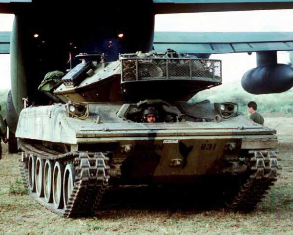 Всего было доступно три способа доставки машины к нужному месту по воздуху: посадочным способом (просто на самолете до аэродрома), сброс на парашюте и сброс с низколетящего самолета. С появлением таких самолетов как С-130 и С-141 Шеридан можно было быстро доставить на любой доступный аэродром. Если же нужно было отправить танк буквально «с корабля на бал», то подходили другие два способа. Обычный сброс осуществлялся при помощи парашютной системы и специального амортизирующего поддончика, тут вопросов нет, все ясно. Но вот вторая методика была похитрее. Сначала С-130 спускался так низко к земле и летел так медленно, как только было возможно, затем аппарель открывалась, запускался «разгрузочный» парашют и упакованный танк вытаскивало наружу, он падал с высоты 1,5-3 метра на скорости 150-170 км/ч, а затем, до полной остановки, еще метров 50-60 весело скакал, иногда кувырком. После ряда аварий на испытаниях с такими выгрузками завязали.