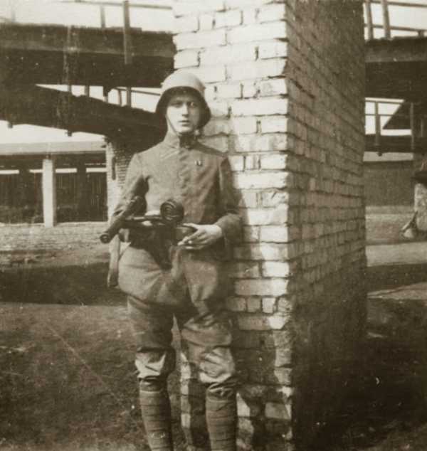 | Немецкий солдат с пистолетом-пулеметом Бергманн (Bergmann) MP-18. Франция, 1918 г. |