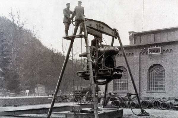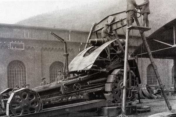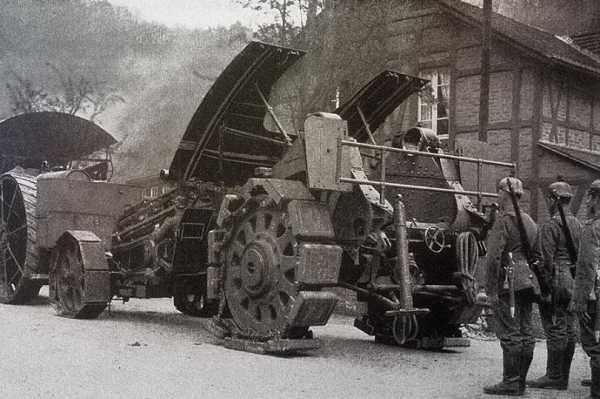 Расчет орудия прибыл на место. Хорошо видны колеса лафета, изготовленные по технологии «пэдрэйл» 4 августа 1914 года немецкие войска двинулись к бельгийской крепости Льеж. Среди 124 орудий, приданных немецким частям в Бельгии, были и две «Большие Берты». Начиная с 5 августа они обстреливали форты Льежской крепости, которые к началу Первой мировой войны уже морально устарели. Несмотря на то, что они строились относительно недавно (в период с 1880 по 1892 год), неармированный бетон их монолитных артиллерийских блоков был недостаточно прочен, чтобы выдержать пробивную и разрушительную мощь бетонобойных снарядов новых немецких артиллерийских систем.