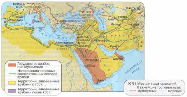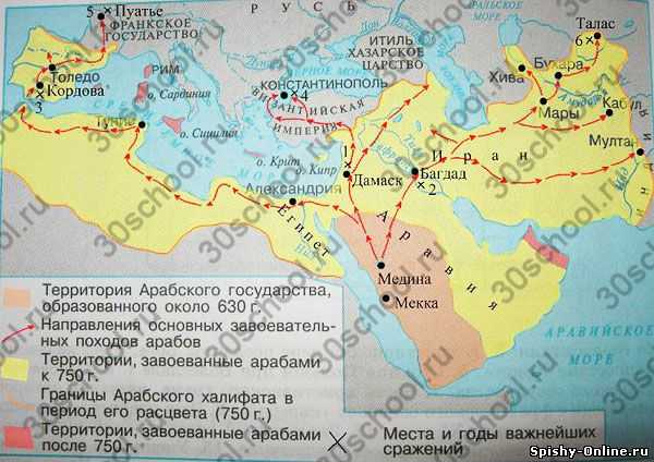 Заполните контурную карту «Завоевания арабов в VII—VIII веках».