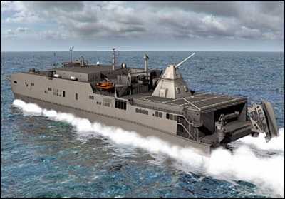 Рисунок судна JHSV Millinocket с установленной для испытаний рельсовой пушкой